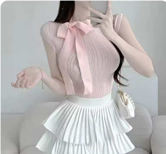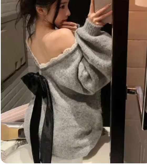 大きなリボンが目を引くゆったりシルエットのニットです。