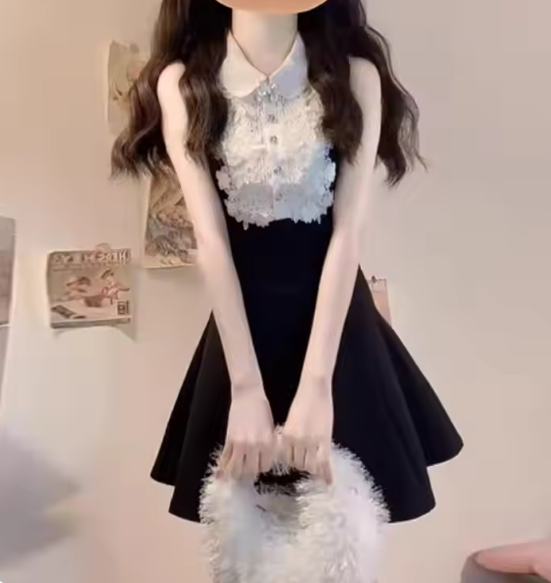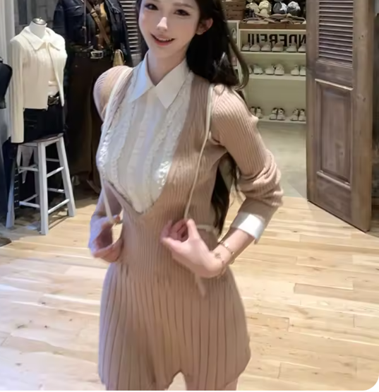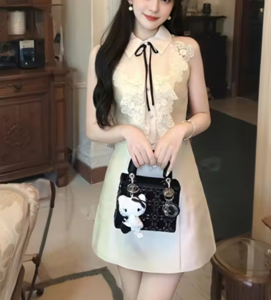 白シャツ&プリーツスカートの清楚な印象のミニワンピースです。