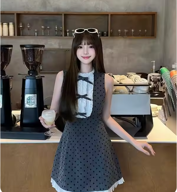 リボンやフリル、ちょっと開いた胸元やカフスなどのディテールも可愛い。