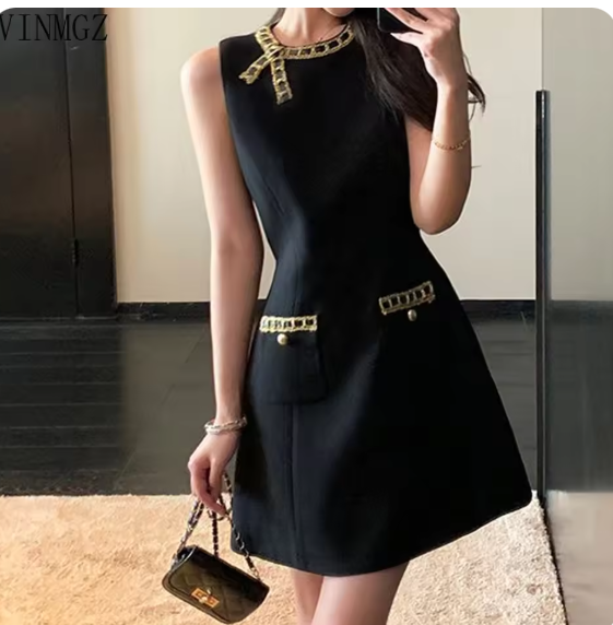 お姉さまっぽいゴールドチェーンモチーフのワンピースです。