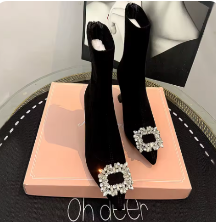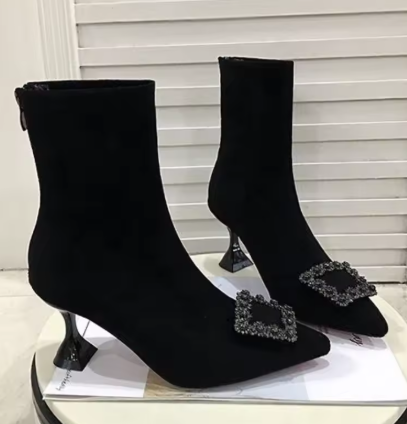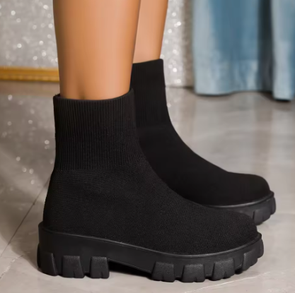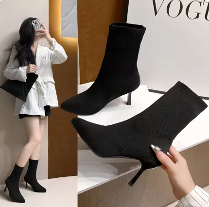 きれいめに履けるシンプルなピンヒールのソックスブーツです。