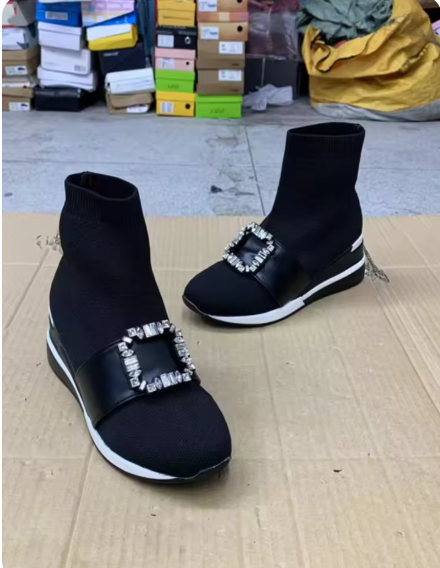 こちらもキラキラビジューバックルやファー付きのソックスブーツです。