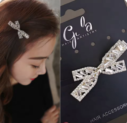 キラキラビジューがかわいいリボンヘアピンです。