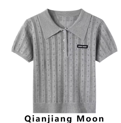 透かし編みがかわいいポロニットです。