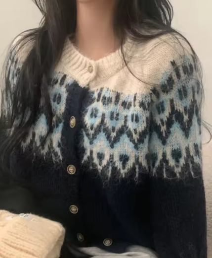 フェアアイル柄のカーディガンです。