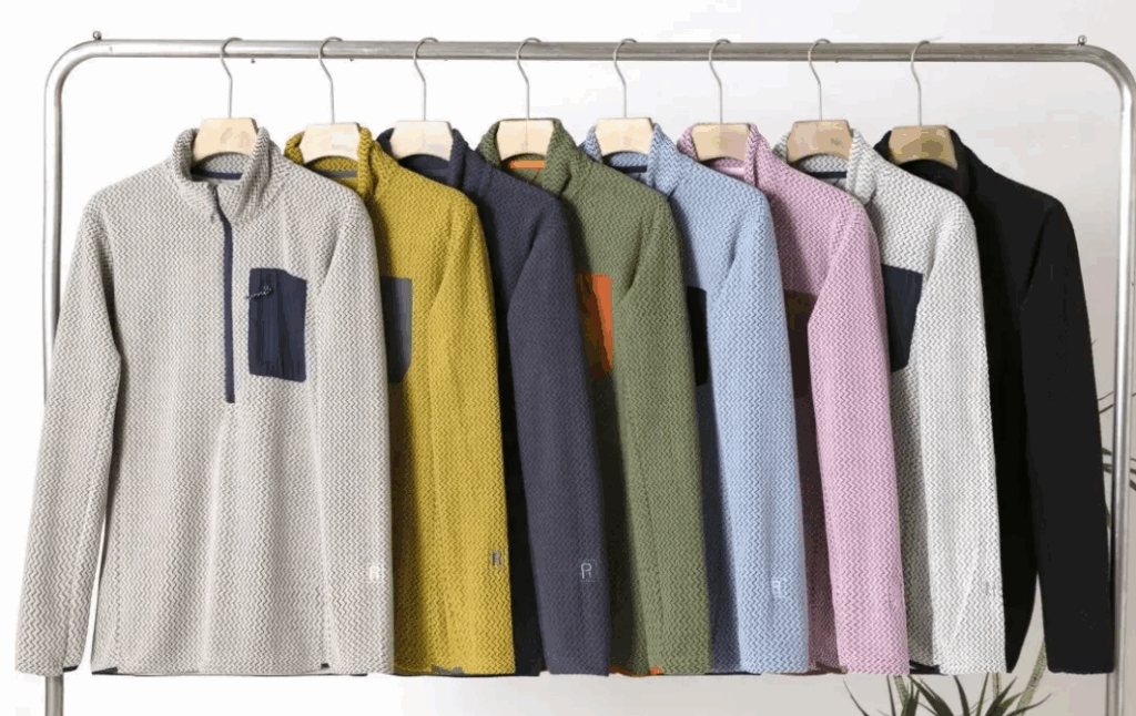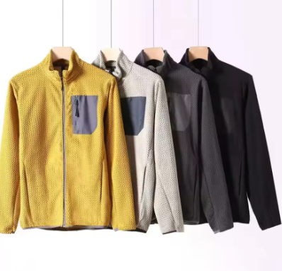 日本で人気のひし形刺繍入りのフリースジャケットです。