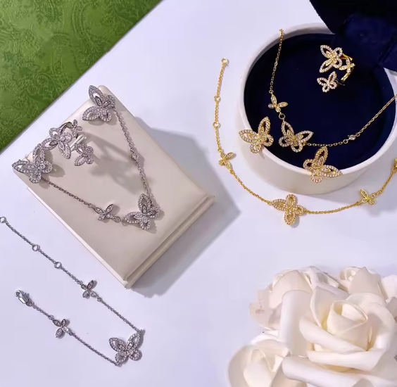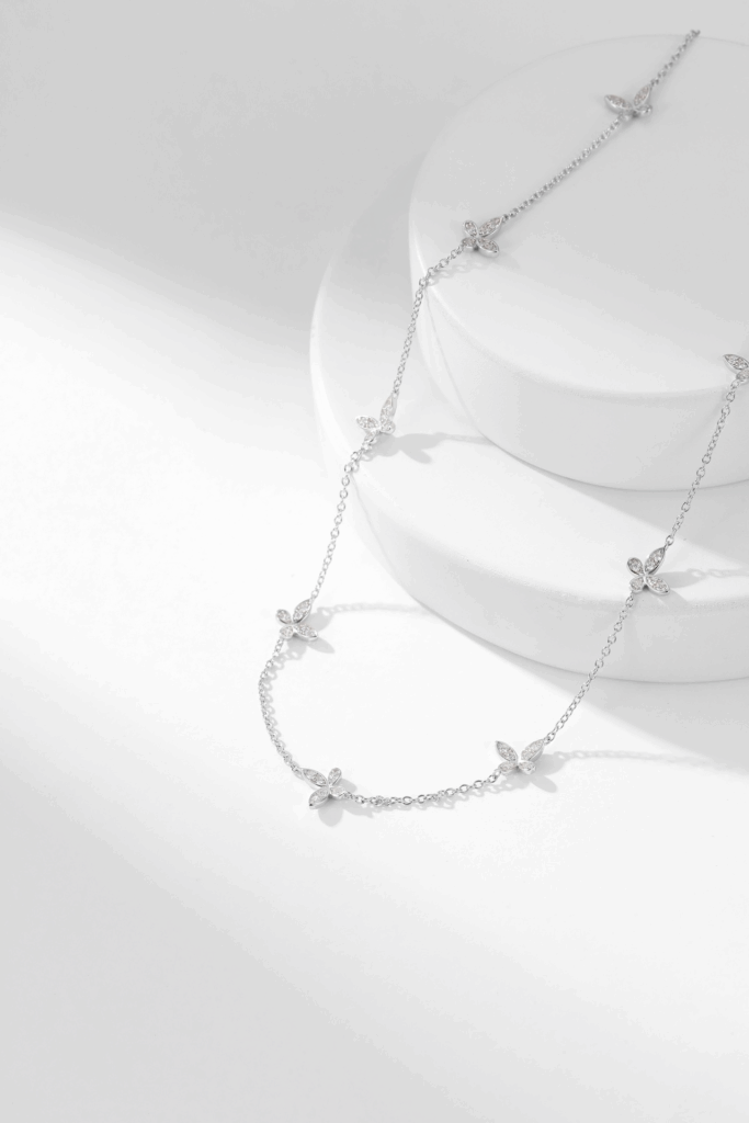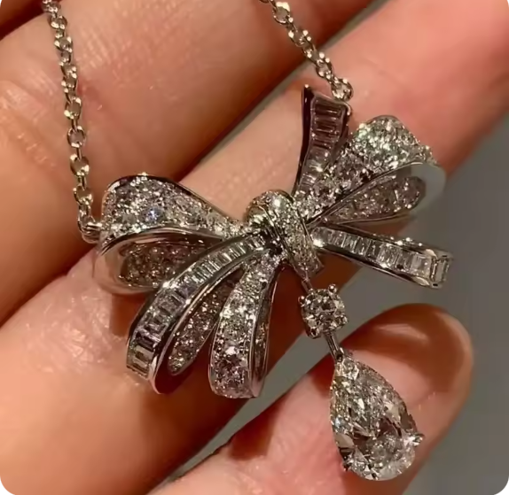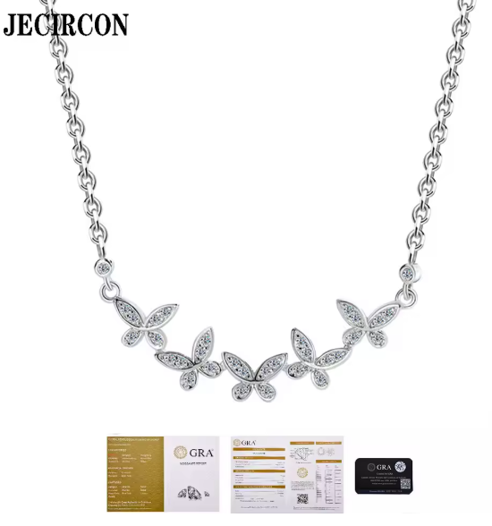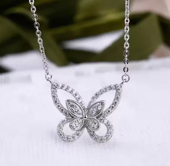 こちらは比較的新しいスモールバタフライのモアッサナイトネックレスです。