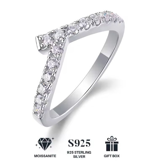 Vシェイプで指が細く長く見え、他のストーン付きリングとの重ね付けにもおすすめです。