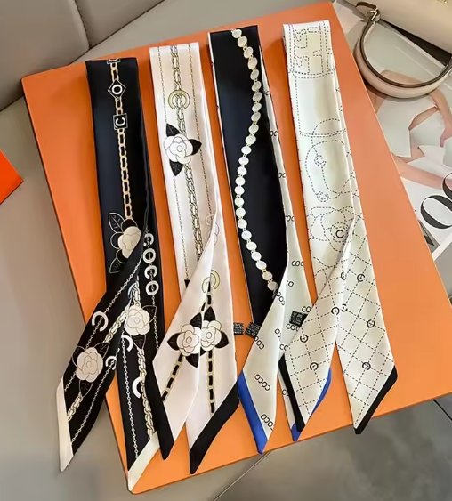 バッグなどはもちろん、ネクタイみたいに巻いても素敵です。