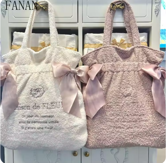 もこもこのブークレー生地がかわいいバッグやポーチです。