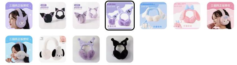 耳付きなど、ふわふわなデザインがかわいいいやーまふいろいろです。