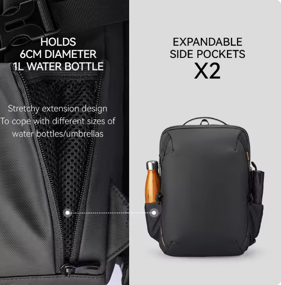サイドポケットが蓋つきでセキュリティ的にも安心ですね。