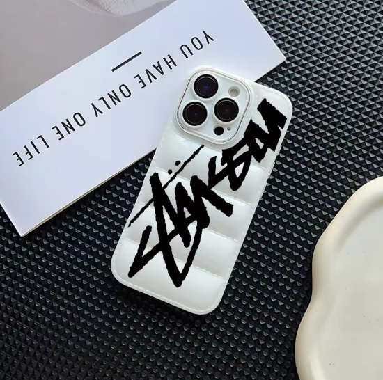 グラフィカルなレタリングがカッコいいパファースマホケースです。