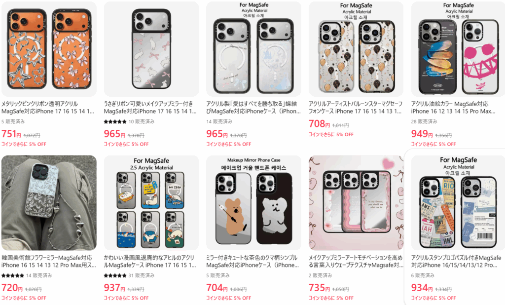 最新のiPhone17対応やMagSafeも多く、デザインも可愛いです。