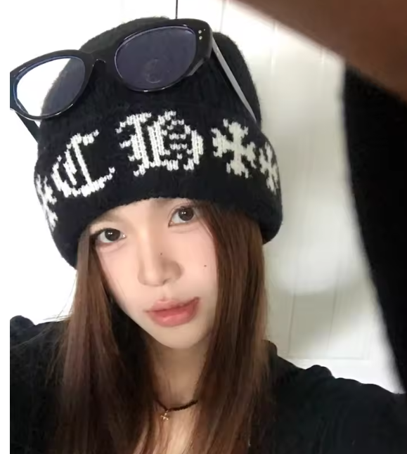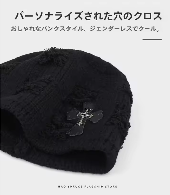 クロスパッチのビーニー帽です。