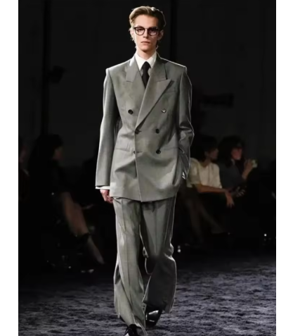 ピークドラペルのダブルブレストで、肩のラインがサンローランらしい。