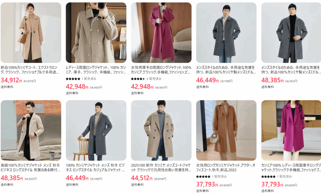 一応100%カシミアだそうで、お店自体がカシミアコートの専門店のようです。