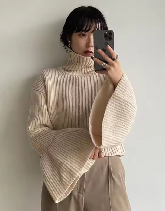 短めの丈など、こだわりの詰まったシンプルニットです。
