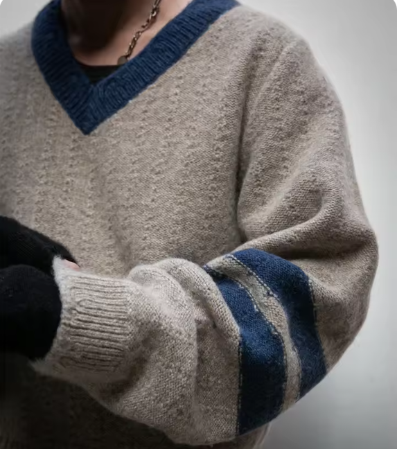 フロントとバックを入れ替えても着られるというリバーシブルニットです。