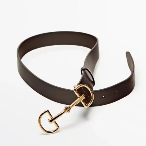 丸みのある」バックルや、上質レザーのベルト本体もエレガントです。