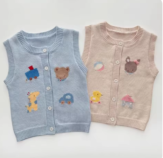 動きを邪魔しないお袖のないデザインと前開きで脱ぎ着もラクチンです。