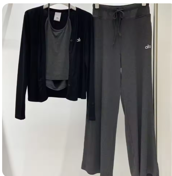 某ヨガウェアブランド風なパンツ&カーディガン&キャミの3点セットです。