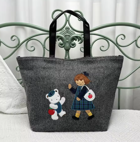 こちらは珍しいヘリンボーン生地のトートバッグ。