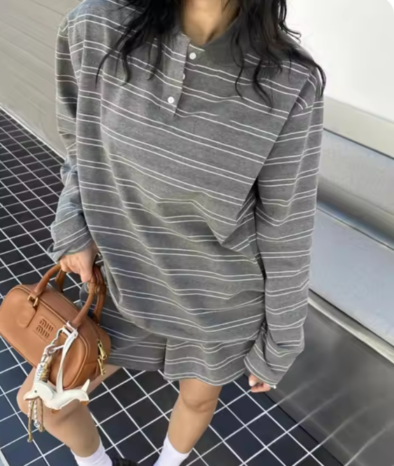 ミウミウみたいなボーダーのポロセットアップ、上下2枚でのお値段です。