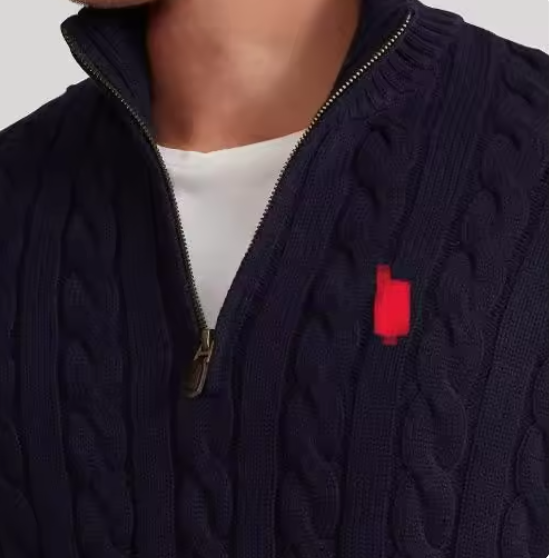 ブルーに、赤のファスナー、黄色のファスナープル…
