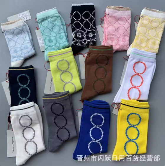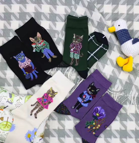 ミナ ペルホネンみたいなテキスタイルデザインの靴下です。