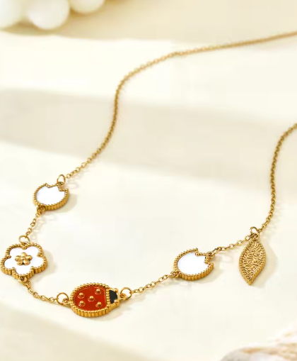 こちらはVCAみたいなテントウムシやプラムのネックレスです。