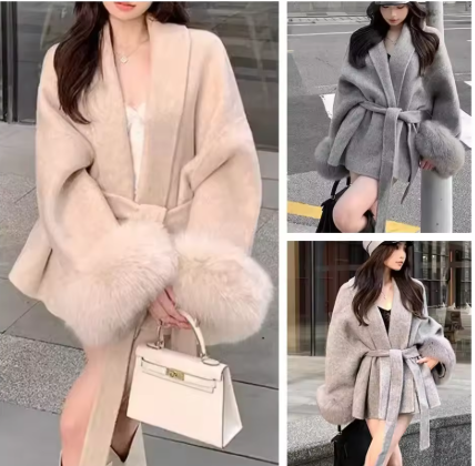 もう少しお姉さんには、お袖にファーが付いたマント風ニットはいかがでしょうか。