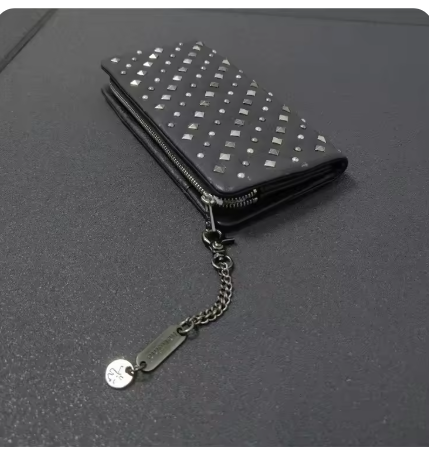 ウォレットチェーンがついていて、金具などを使ってバッグやズボンに固定できます。