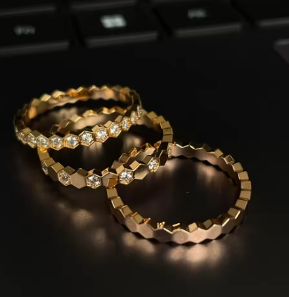 特に屋内照明や太陽光の下でよく輝き、存在感のある煌めきをお楽しみいただけます。