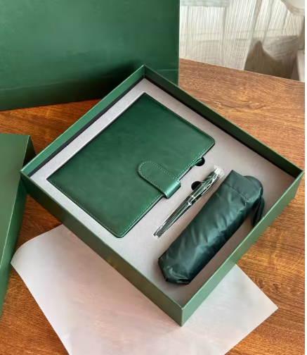 口レックス風の手帳、ボールペン、日傘のセットです。