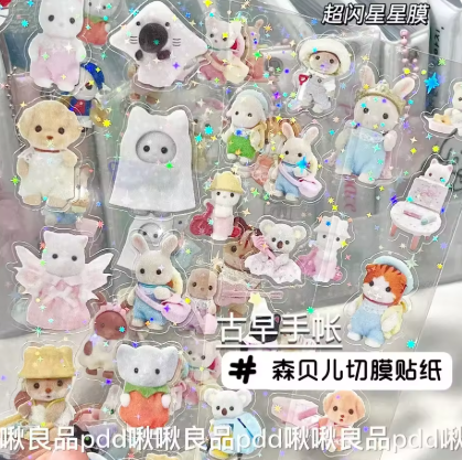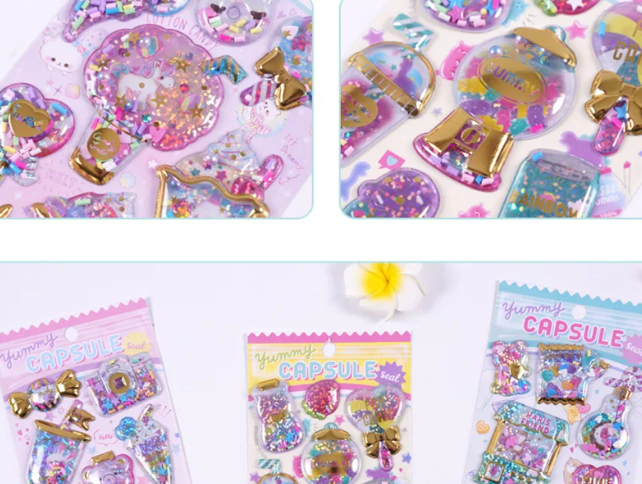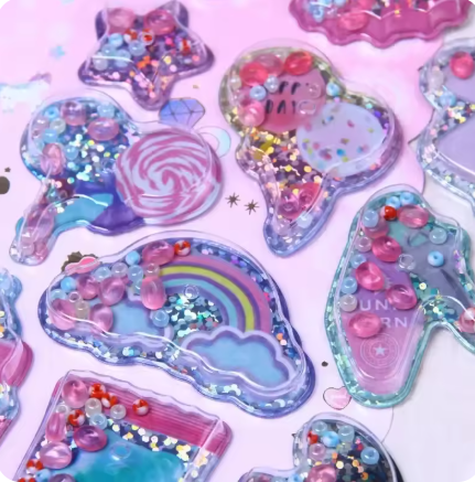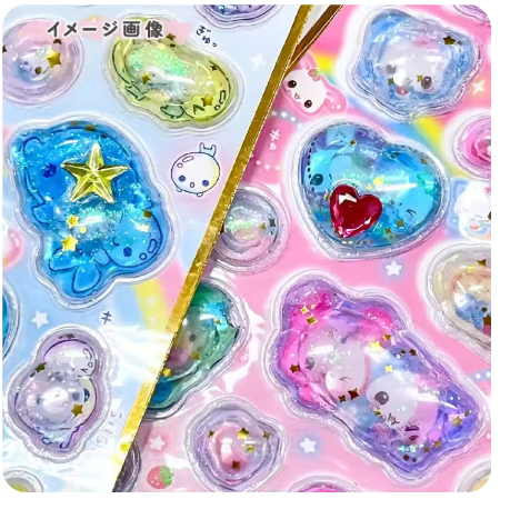 キラキラの透明PVCシールで惜しみなく使うのにどうぞ。