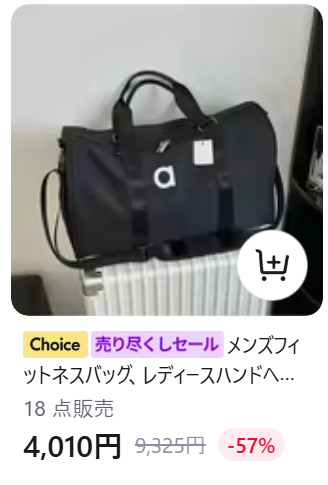 これも軽量で、スポーツジムや旅行などに使える万能バッグです。
