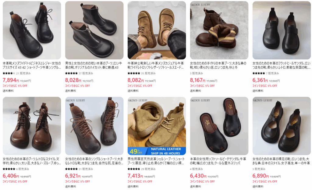 4000円台と手頃ながら、本革&コルクソールで品質良さそうでした。