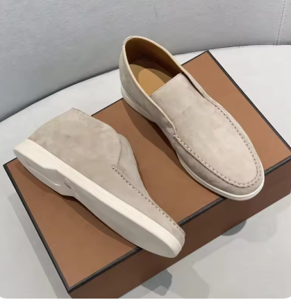 丸みのある幅広デザインで、ゆったりと履けそうでした