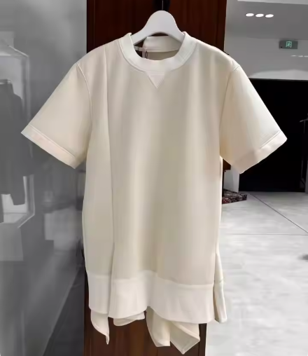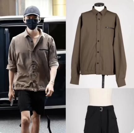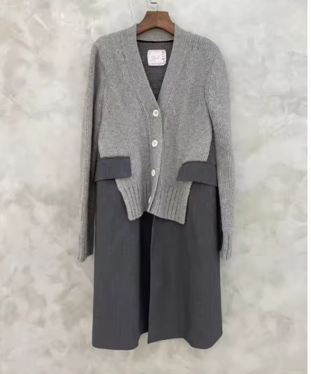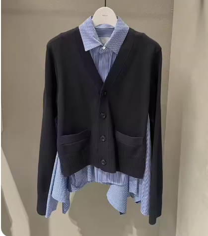 ポプリンシャツとカーディガン風なドッキングトップスです。