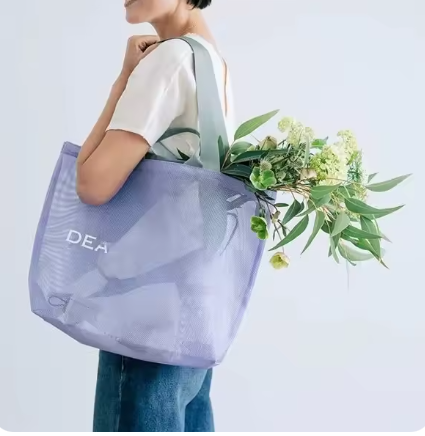 人気のグロサリーデザインなメッシュトートバッグです。