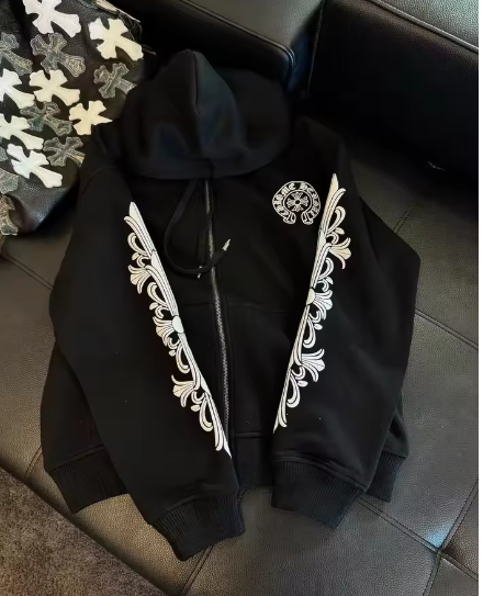 袖の紋章や、胸のマークがアイコニックなフルジップアップパーカーです。