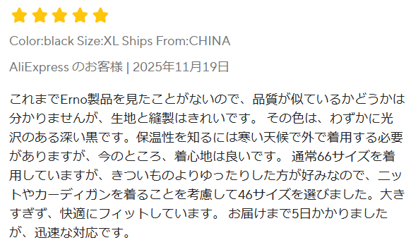 多分アリエクで買えるHの中では最も暖かいタイプです。