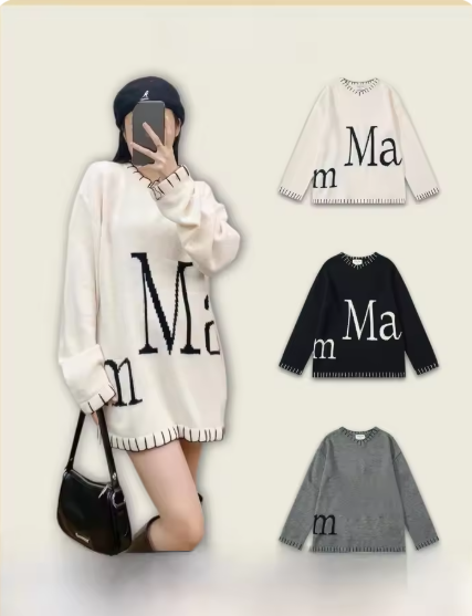 ビッグレタリングが目を引くゆるっとしたシルエットのニットです。
