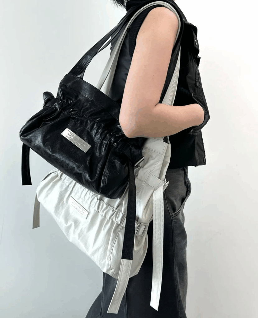 サイドにあるベルトでキュッと絞ってシルエットを変化させられます。