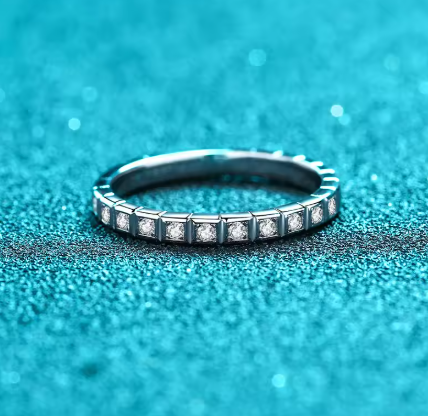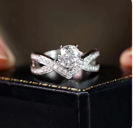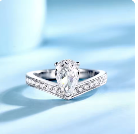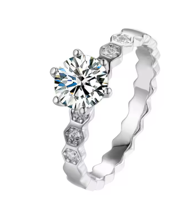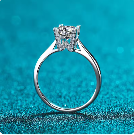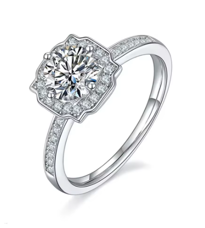 というわけで、似たようなデザインのモアッサナイトリングとかいかがですかね。