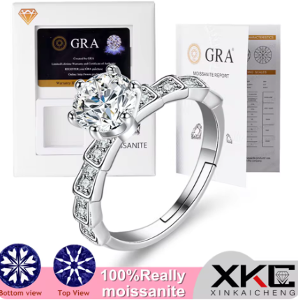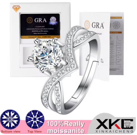 GRA保証付きのモアッサナイト製で、本物にも負けない輝きです。