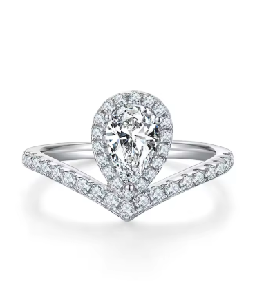 最近人気のヘイローデザインではないペアシェイプリングです。