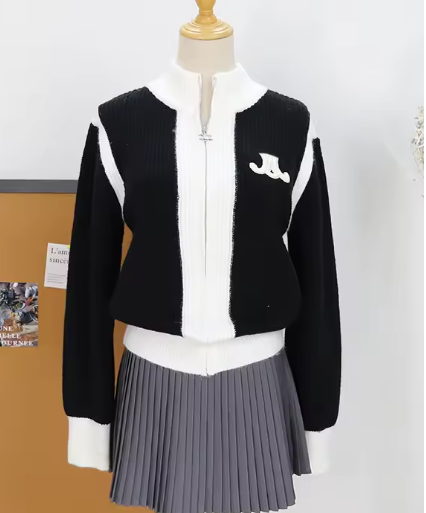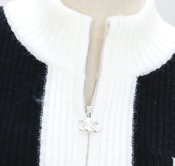 スタジャンみたいなデザインのジップアップニットです。