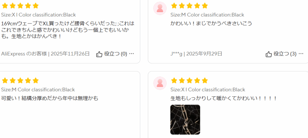 日本人レビューも複数あり、評価5点満点と満足度高いようです。